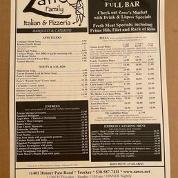 Zano’s Family Italian & Pizzeria, located in Truckee, CA, is a popular spot for Italian and pizza lovers. This family-friendly restaurant offers a wide range of options, including vegan and vegetarian choices, making it a versatile dining destination. The menu features delicious items like Calamari Steak, Tuscan Roasted Leek and Onion Soup, Chicken Picatta, and Pork Osso Bucco.